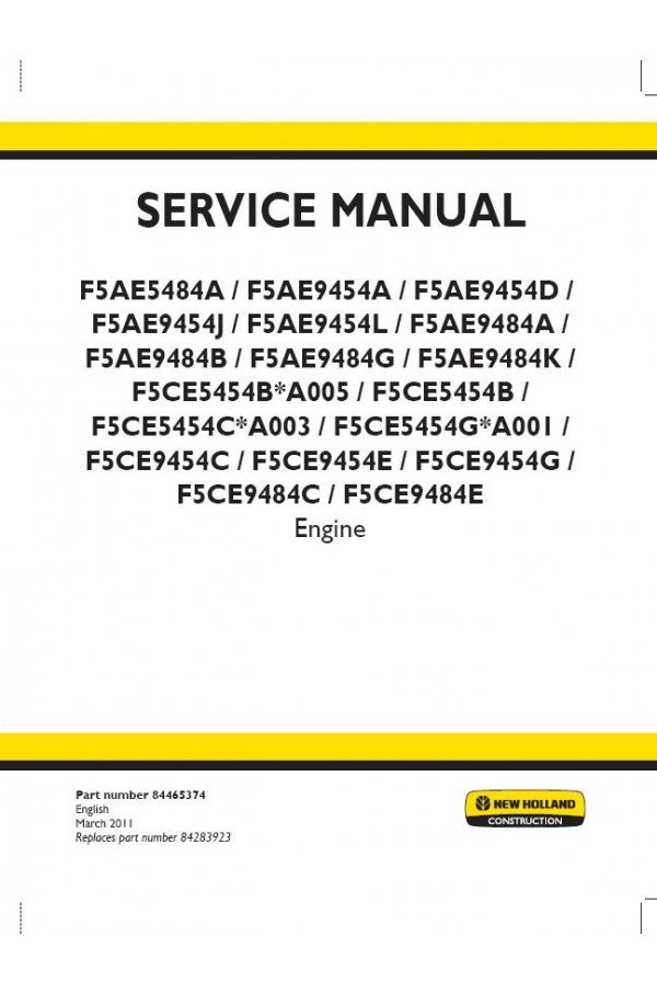 New Holland F5AE5484A, F5CE9484E ENGINES Service Repair Manual 84465374 - Manual labs