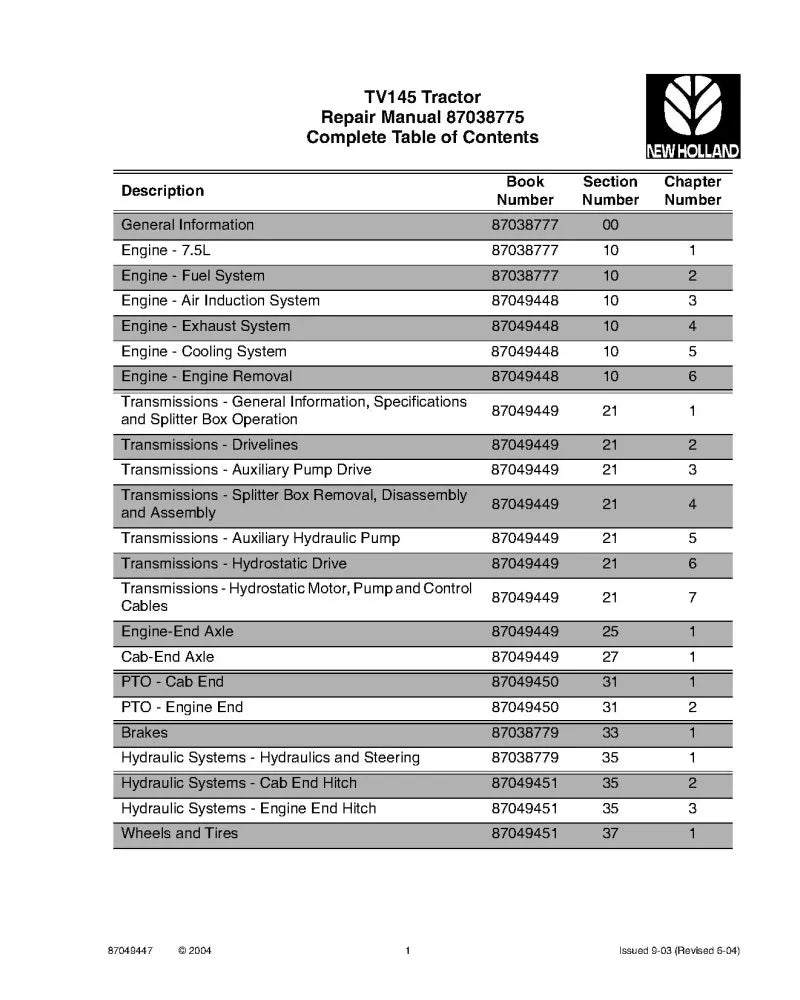 DOWNLOAD COMPLETE REPAIR MANUAL FOR NEW HOLLAND TV145 TRACTOR | PUBLICATION NUMBER (87038775)