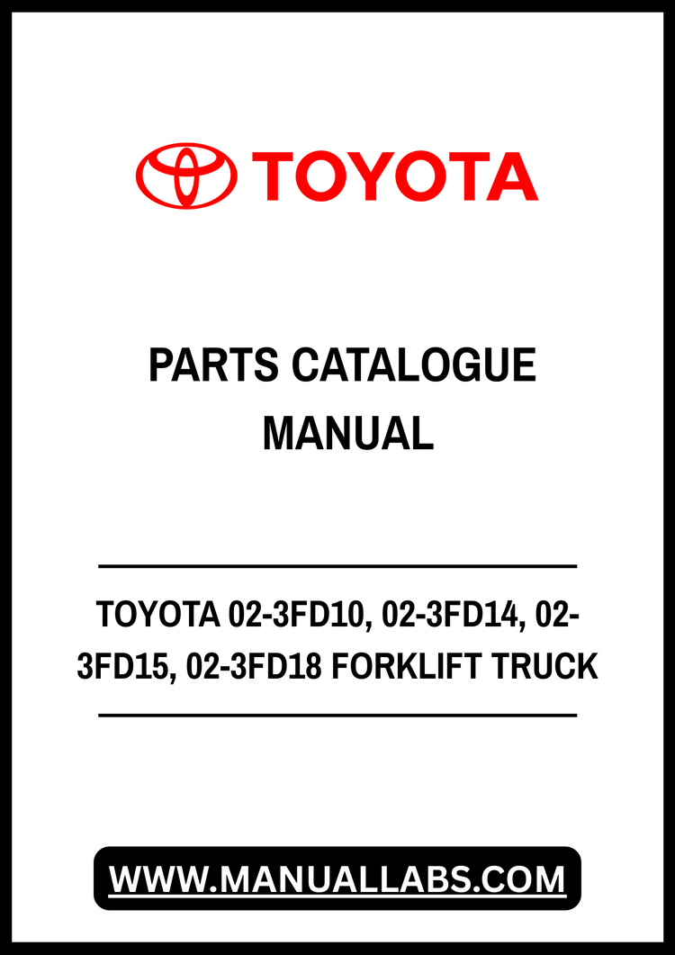 1. Discover the ultimate resource for maintaining and repairing your Toyota 02-3FD10, 02-3FD14, 02-3FD15, and 02-3FD18 forklift trucks with our comprehensive Parts Catalogue Manual. This PDF file is designed to provide you with detailed diagrams, part numbers, and specifications, ensuring you have everything you need at your fingertips.