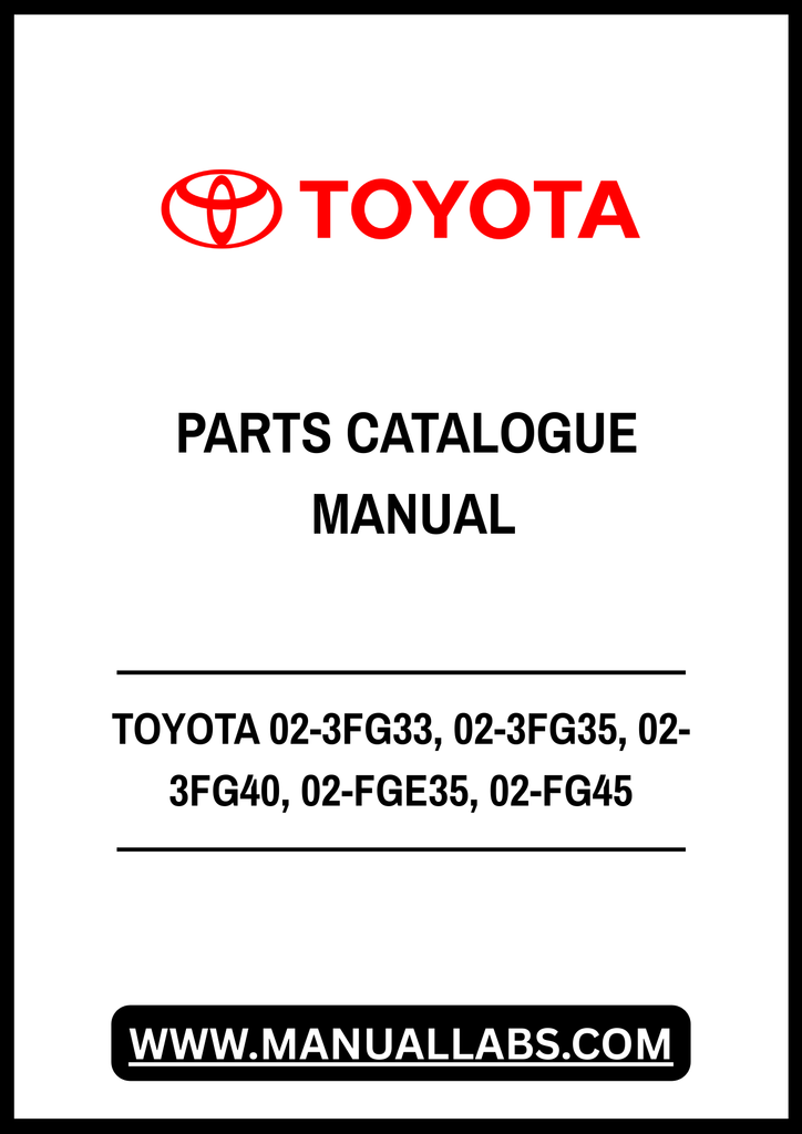1. Discover the ultimate resource for maintaining and repairing your Toyota forklift with the comprehensive TOYOTA 02-3FG33, 02-3FG35, 02-3FG40, 02-FGE35, and 02-FG45 Forklift Truck Parts Catalogue Manual. This PDF file is meticulously designed to provide you with detailed diagrams, part numbers, and specifications, ensuring you have everything you need at your fingertips.