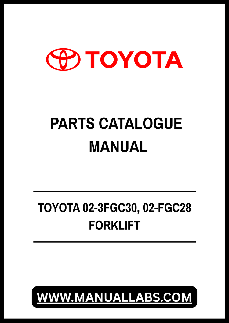 1. Discover the ultimate resource for maintaining and repairing your Toyota 02-3FGC30 and 02-FGC28 forklift trucks with our comprehensive Parts Catalogue Manual. This PDF file is meticulously organized to provide you with detailed diagrams, part numbers, and specifications, ensuring you have everything you need at your fingertips.