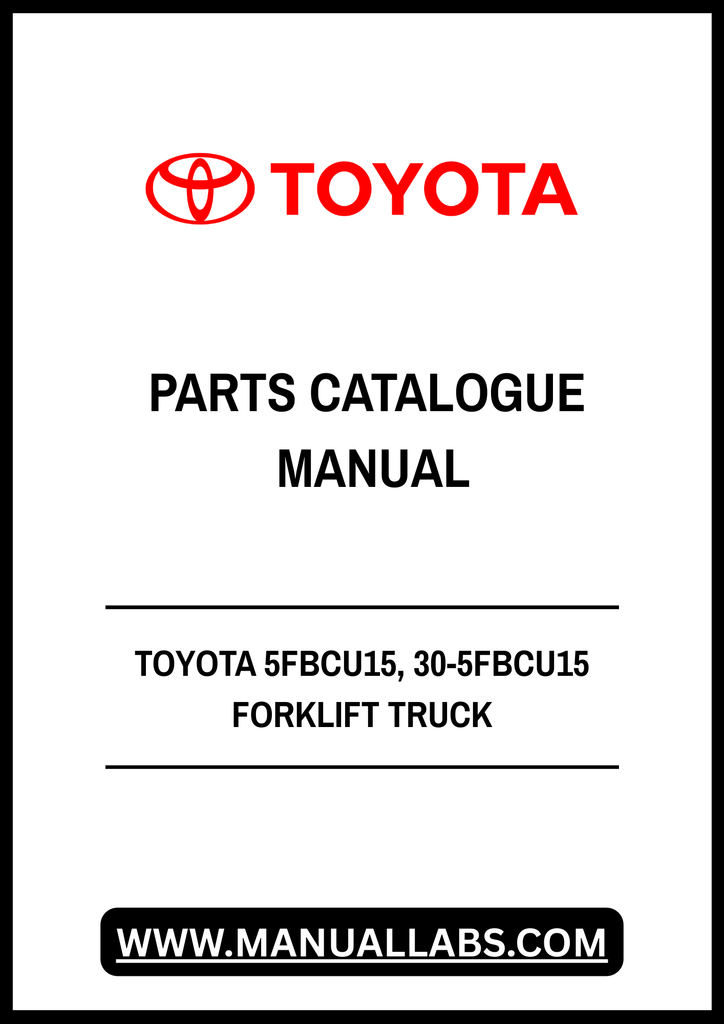 1. Discover the ultimate resource for maintaining and repairing your Toyota 5FBCU15 and 30-5FBCU15 forklift trucks with our comprehensive Parts Catalogue Manual. This PDF file is meticulously organized to provide you with detailed diagrams, part numbers, and specifications, ensuring you have everything you need at your fingertips.