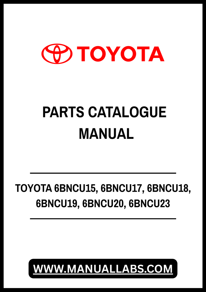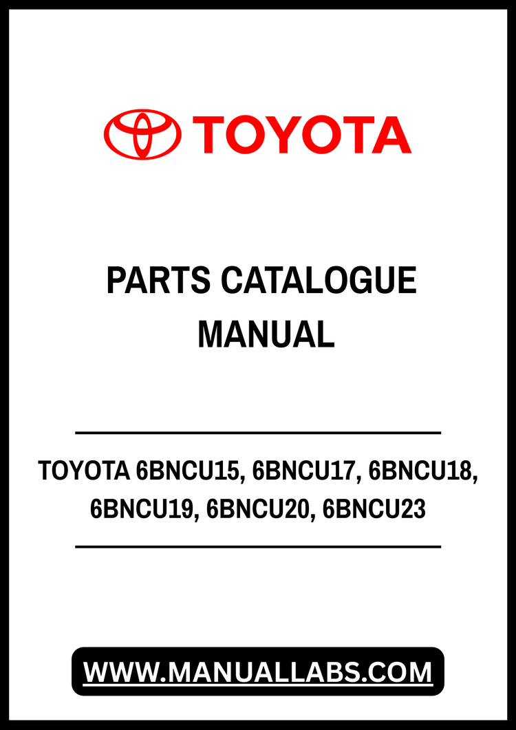 1. Discover the ultimate resource for maintaining and repairing your Toyota forklift trucks with the comprehensive Forklift Truck Parts Catalogue Manual. This PDF file covers a wide range of models, including the 6BNCU15, 6BNCU17, 6BNCU18, 6BNCU19, 6BNCU20, 6BNCU23, 6BNCU25, 6BNCU28, 6BNCU30, and 6BVNCU13, ensuring you have access to essential information for each specific unit.