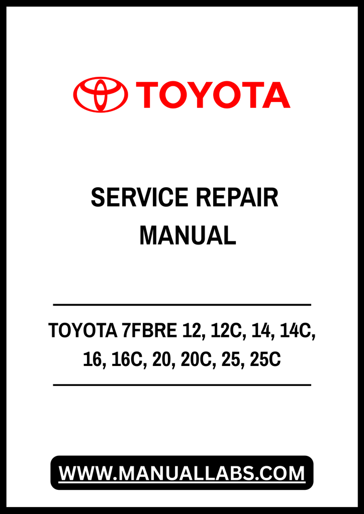 1. Unlock the full potential of your Toyota forklift with the comprehensive Toyota 7FBRE Service Repair Manual. This PDF file is meticulously designed for models 12, 12C, 14, 14C, 16, 16C, 20, 20C, 25, and 25C, providing you with essential insights and detailed instructions for effective maintenance and repair.