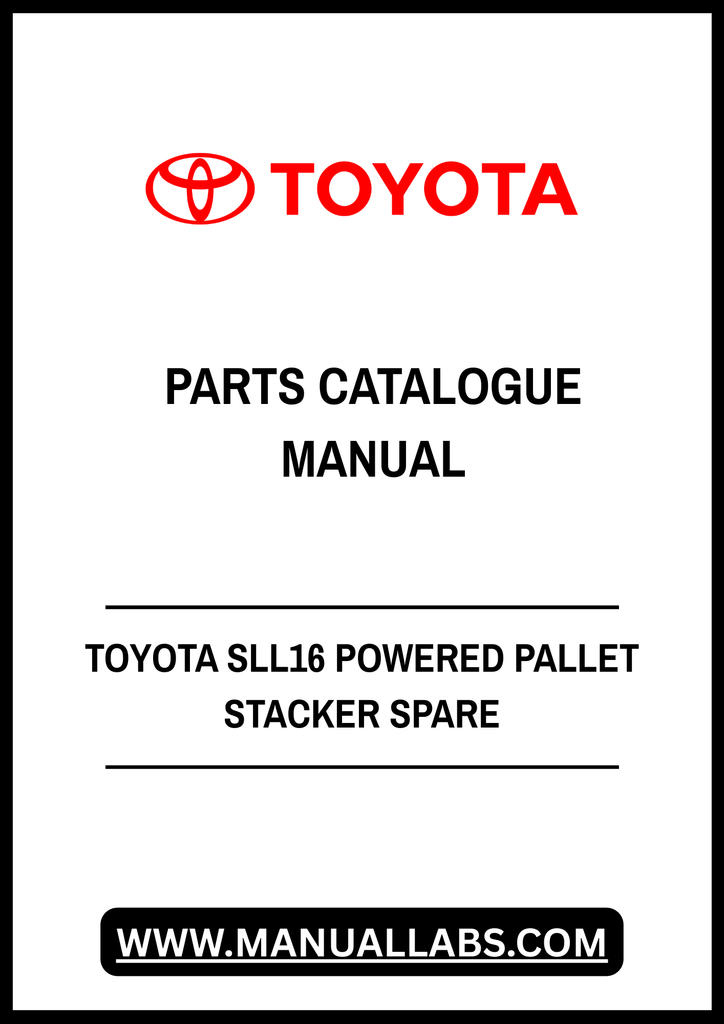 1. Discover the essential Toyota SLL16 Powered Pallet Stacker Spare Parts Catalogue Manual, now available in a convenient PDF format. This comprehensive guide is designed to provide you with detailed information on all spare parts, ensuring you have everything you need to maintain and repair your equipment efficiently.